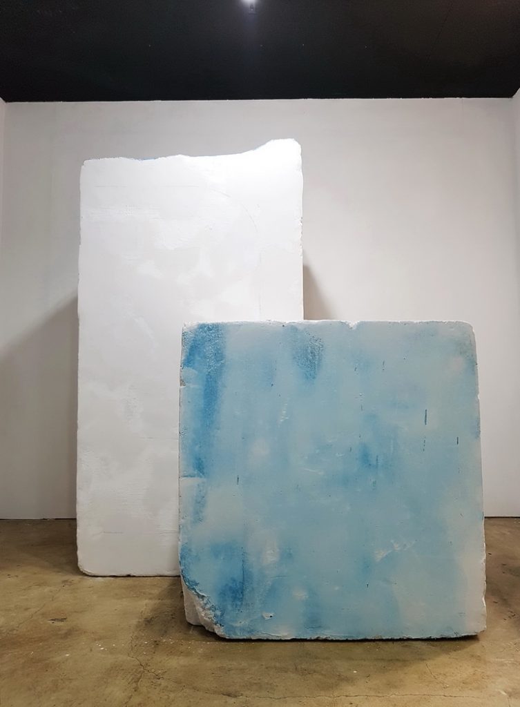 예를 들어 <구름 조각> 연작은 시시각각 변화하며 모였다 흩어지는 구름을 다양한 형태의 덩어리로 표현한 것으로, 우연에 의한 부분과 의도에 의한 부분이 섞여 있는 기묘한 형태를 띠고 있다. 작가의 시야가 구름의 형태와 맞닿는 순간을 자연과 주체가 만나는 지점으로 상정할 수 있다면, 작가가 선택한 구름 조각의 형태 역시 그 찰나의 순간을 기법적으로 보여준 것으로 볼 수 있다. 이 형태는 소재보다는 관념적 의미를 담은 것이지만, 사각형의 막혀있는 형태는 구름이라는 소재가 지닌 자유라는 속성을 시간과 인체의 제약으로 한계를 지닌 모습으로 표현되었다. 이렇게 의도하여 만든 부분과 우연히 만들어진 부분이 섞여 있는 형태는 <관목> 시리즈에서도 볼 수 있으며 자연물을 인공적으로 만든다는 예술의 명제를 가장 솔직하게 드러낸 것으로 느껴진다.