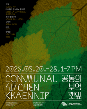 ≪공동의 부엌: 깻잎≫ 2025. 9. 20 (토) – 9. 28 (일) 1–7pm (휴무 없음) 이번 전시의 중심에 있는 부엌은 사유화된 요리 공간을 넘어 도시 속 공공의 공간으로서 누구에게나 열려 있습니다. 이곳에서 우리는 깻잎을 공유재로 나누며, 한 장의 잎이 식탁과 입에 오기까지의 다양한 행위와 여러 층위의 서사를 발견해봅니다. 음식을 매개로 맺어지는 관계를 질문하고, […]